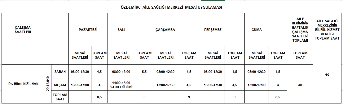 Çalışma Saatlerimiz